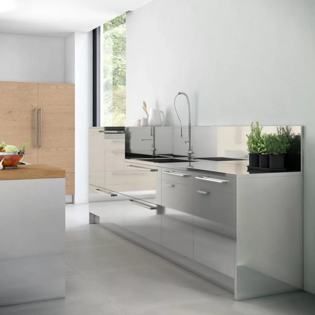 El acero inoxidable es un material ideal para la cocina. Los frentes Mobalco en acero inoxidable, higiénico y antibacteriano, están cuidadosamente elaborados a doble cara contando con refuerzos interiores para obtener la máxima robustez en los anclajes. Las aristas mecanizadas mediante tecnología de alta precisión se revisan y pulen manualmente para evitar cualquier imperfección. Las zonas abiertas, muy valoradas por los cocineros profesionales, facilitan el acceso a los elementos más utilizados.