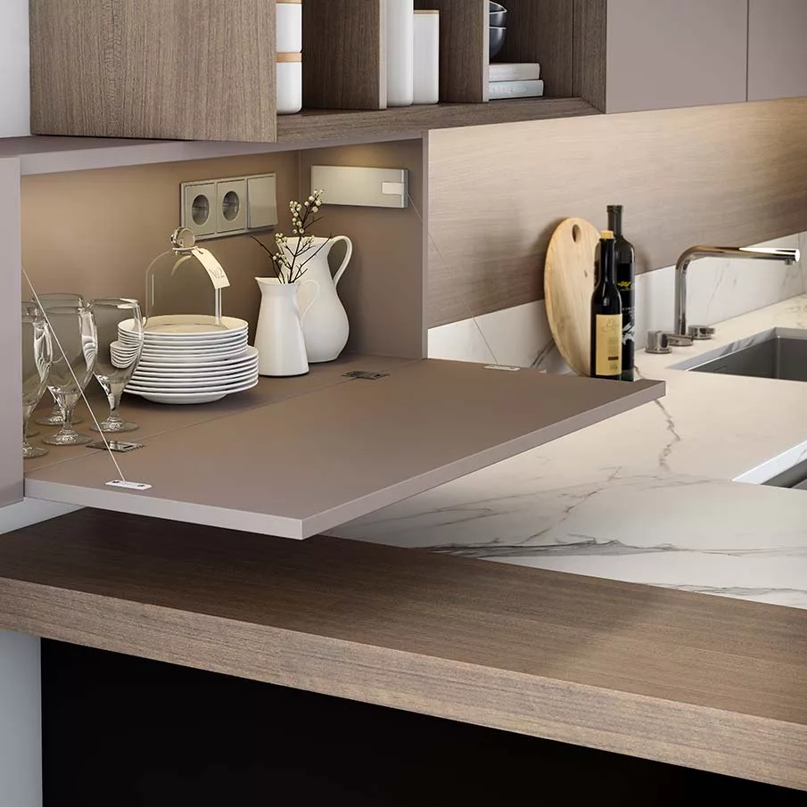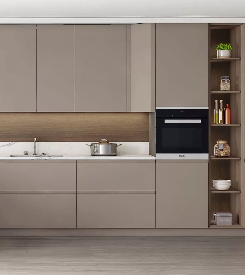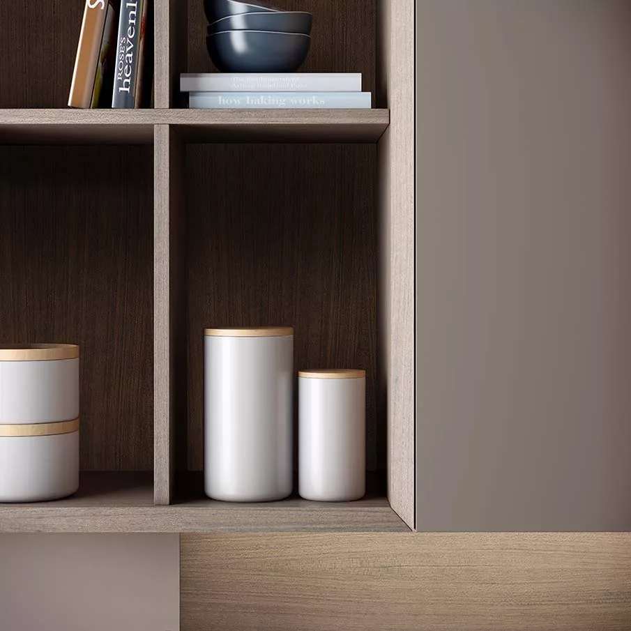 La elegancia no entiende de modas. Métrica es una sobria combinación de formas limpias y depuradas que le otorgan a este conjunto un aspecto sólido y atemporal. La colección dispone de un programa de acabados en madera y laca de alta resistencia que nos permite imprimir al conjunto una fuerte personalidad. Su estudiado diseño facilita la apertura de cajones con una gran comodidad gracias a sus frontales de 26 mm de grosor con amplio espacio de agarre. Métrica es sinónimo de belleza y precisión.