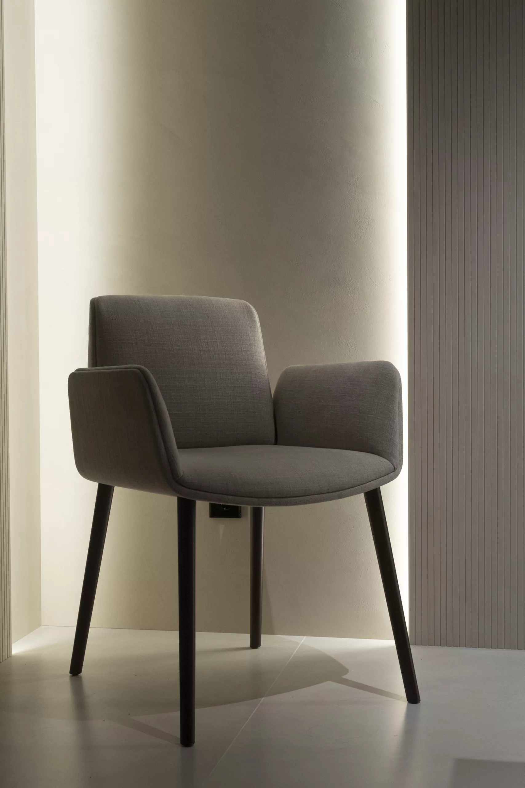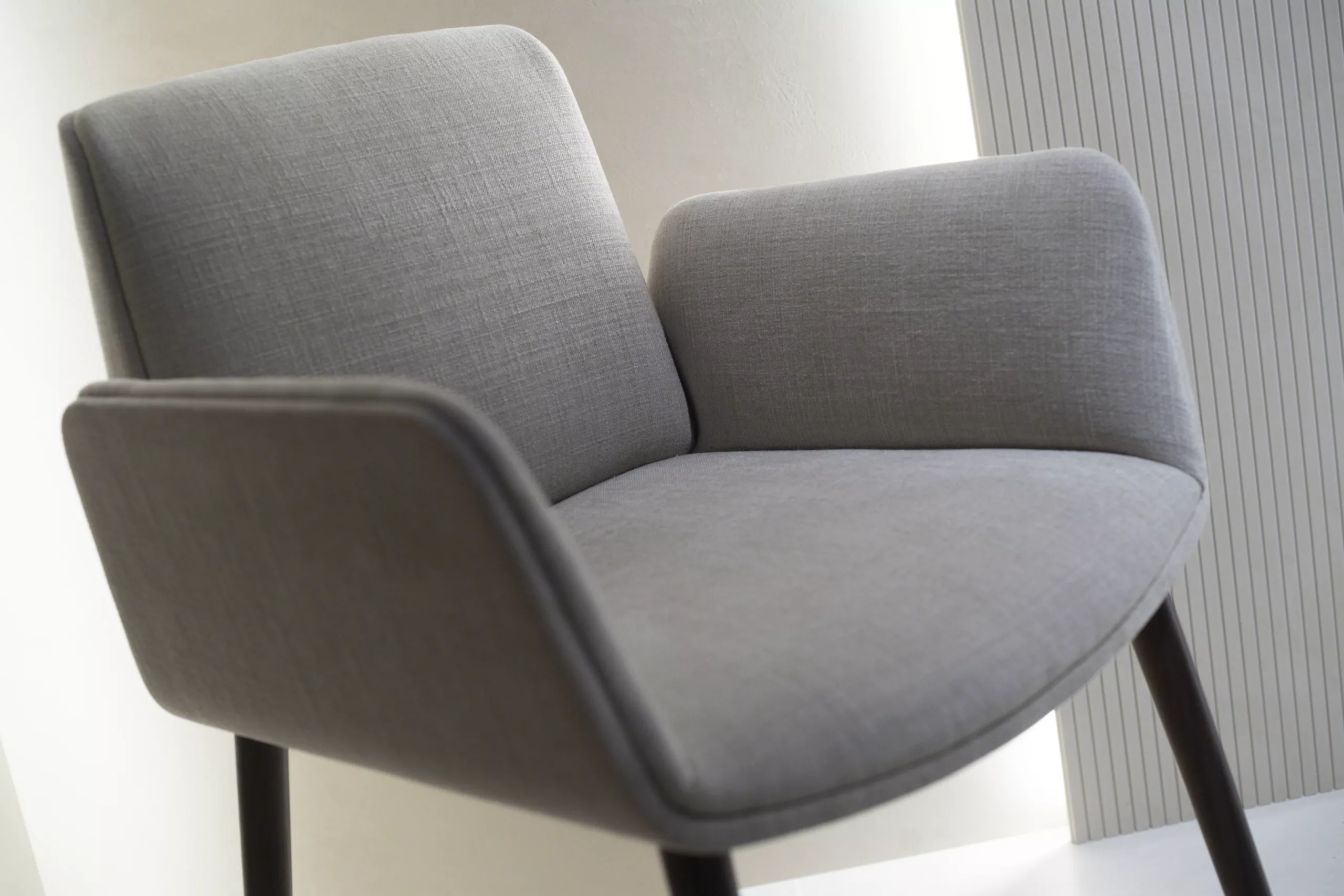 Diseño envolvente, líneas suaves y una estructura cálida hacen de la silla HUG una pieza que invita al confort sin renunciar a la elegancia. Sus brazos integrados, respaldo generoso y asiento mullido garantizan una experiencia de uso cómoda, ideal tanto para largas sobremesas como para salas de espera o espacios contract de alto nivel.